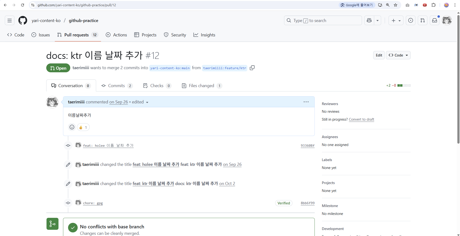 docs: ktr 이름 날짜 추가 by taerimiiii · Pull Request #12 · yari-content-ko/github-practice